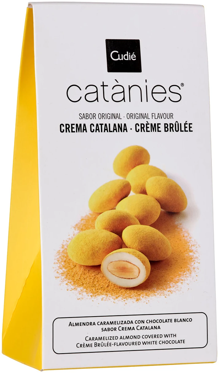 Karamellisierte Mandeln in weißer Schokolade mit Créme Brûlée Geschmack