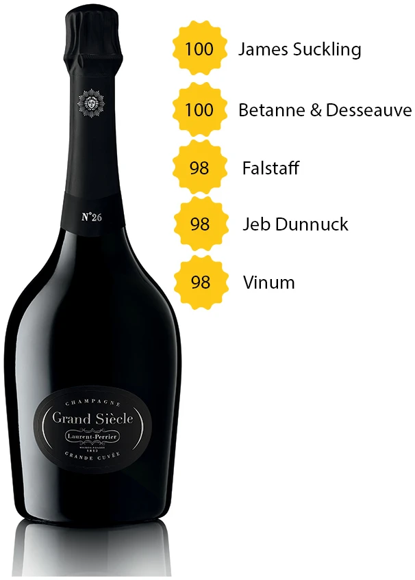 James Suckling bewertete Grand Siècle No 26 wie folgt: „This is really something. Electric on the palate. The aromas are so complex with sliced fresh and dried ginger, subtle pie crust, tarte tatin and hints of nutmeg with some salted caramel. Toasted bread, too. Always subtle. The palate is full- to medium-bodied yet hemmed-in with a freshness and balance that draws you back. Savory and vibrant. It’s full of energy. Spectacular. Fascinating. Symphonic blend of 2012, 2008 and 2007. 65% of the 2012, 25% of the 2008 and 10% of the 2007“ – 100 Punkte