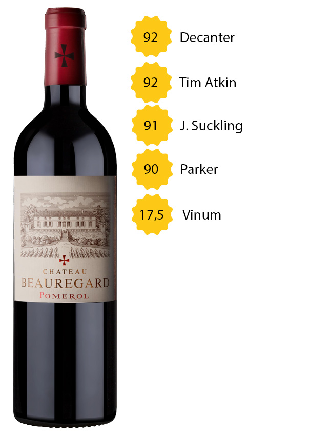 Vinum bewertete Château Beauregard 2012 wie folgt: “ Superber Wein, noch einmal besser als 2011: komplexe, viel versprechende Aromatik; vollmundig, von ausnehmend dichter Art, aber ohne Extrakt-Übergewicht, perfekt reife Tannine, besitzt Fleisch und Fülle..“ – 17,5/20