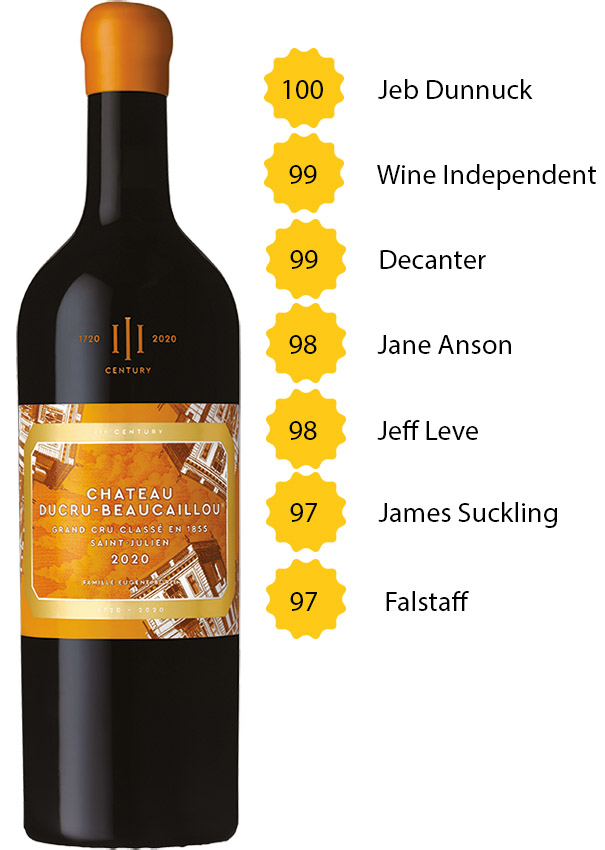 Decanter bewertete (01/2023) Château Ducru Beaucaillou 2020 wie folgt: „Evocative and moreish, a Ducru that beguiles and delights from the start with a scented nose full of cedar, rose, violets, cherries and damsons – a riot of Cabernet typicity. Vibrant and pulsing on the palate, this has grip and intention from the get-go. Massy, full and wide in the mouth – there’s density and this is broad but it’s delicate too – a sense of weightlessness with such movement and energy and a soft sweet, succulent grip throughout. Powerful with present tannins that unravel slowly so there’s time to appreciate the details as they come. A thoughtful and intellectual wine that leaves a smile on your face.“ – 99 Punkte