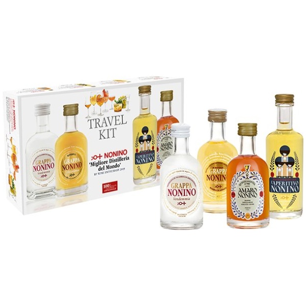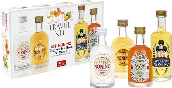 ab 12x nur 24,93€ pro Stück.Spezielle Box von Nonino Travel Kit. Jede Box enthält je eine Flasche Grappa Vendemmia, Vendemmia Riserva, Aperitivo und Amaro.