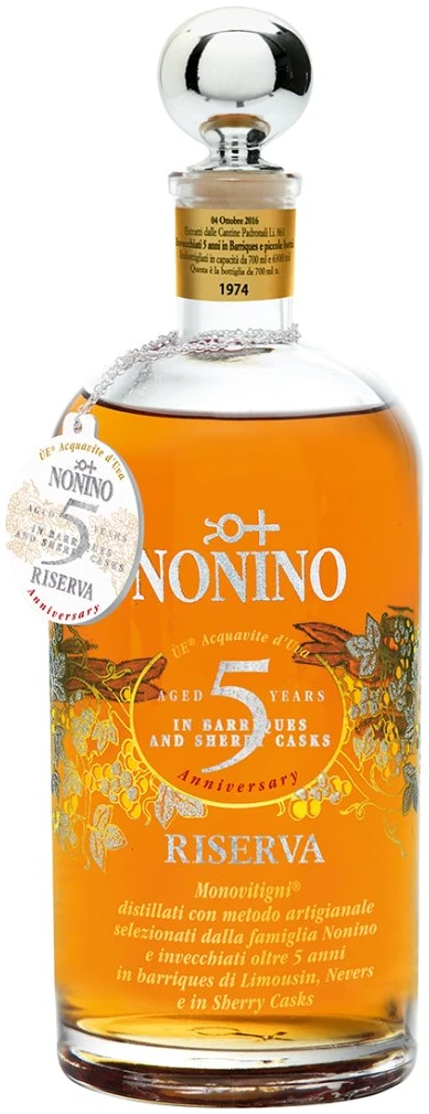 Bernsteinfarbend, intensiv und samtig im Glas. In der Nase ist das Destillat sehr vielschichtig, weich und elegant. Es duftet fruchtig und blumig, nach Vanille, Mandeln, Trockenobst und Trauben, was typisch ist für bedeutende Rebsorten und ihre Reifung in kleinen Fässern aus verschiedenen Hölzern. Am Gaumenelegant und würzig, die aromatischen Eigenschaften werden klar bestätigt. Langer Abgang.
